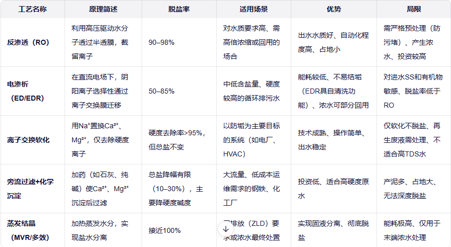 二、主流循环水脱盐工艺及处理效果对比